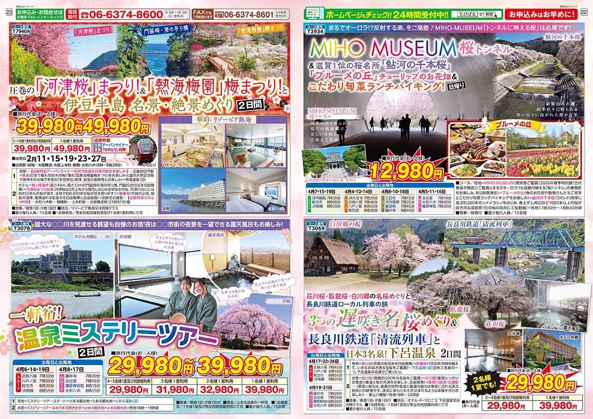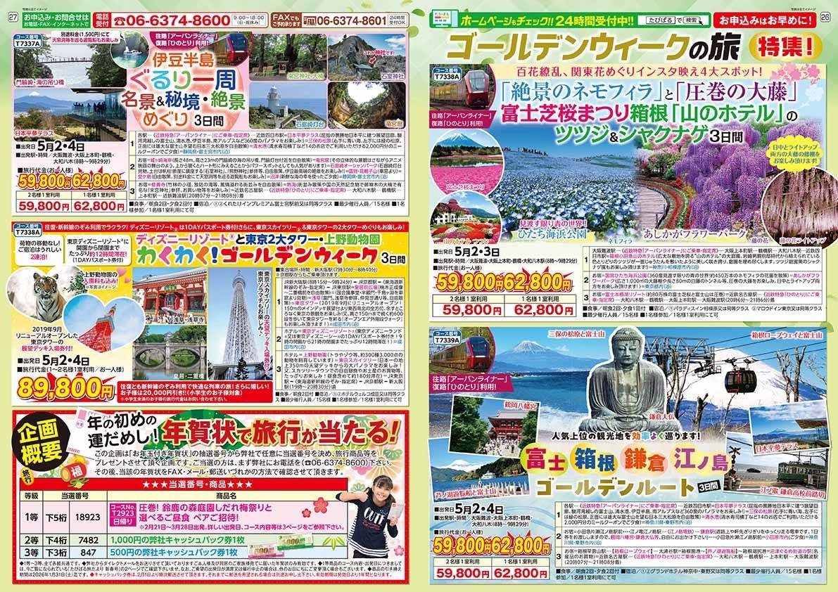 たびぱる旅だより新春号を発行しました! たびぱる旅だより新春号(2025年1月8日発行) 旅だより新春号掲載ツアー一覧はこちら P1・P28 P2・P3 P4・P5 P6・P7 P8・P9 P10・P11 P12・P13 P14・P15 P16・P17 P18・P19 P20・P21 P22・P23 P24・P25 P26・P27
