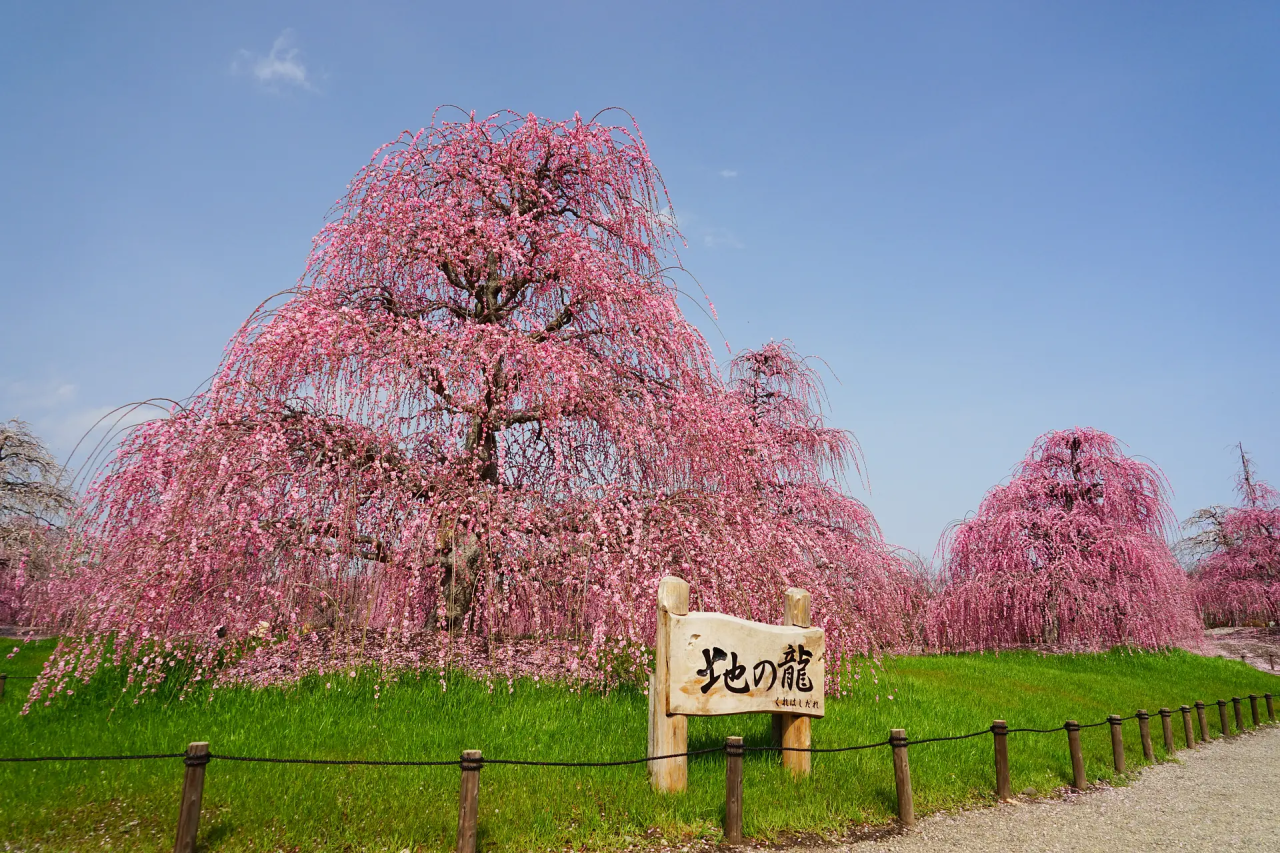 期間限定の「研究栽培農園」で2014年オープンのスポット。日本の伝統を重んじ、『匠の技』で作り上げた、美しい枝垂れ梅の数々。日本中から集められた枝垂れ梅の名木は、呉服枝垂(くれはしだれ)を中心に200本、日本最大級の大木も含まれております。