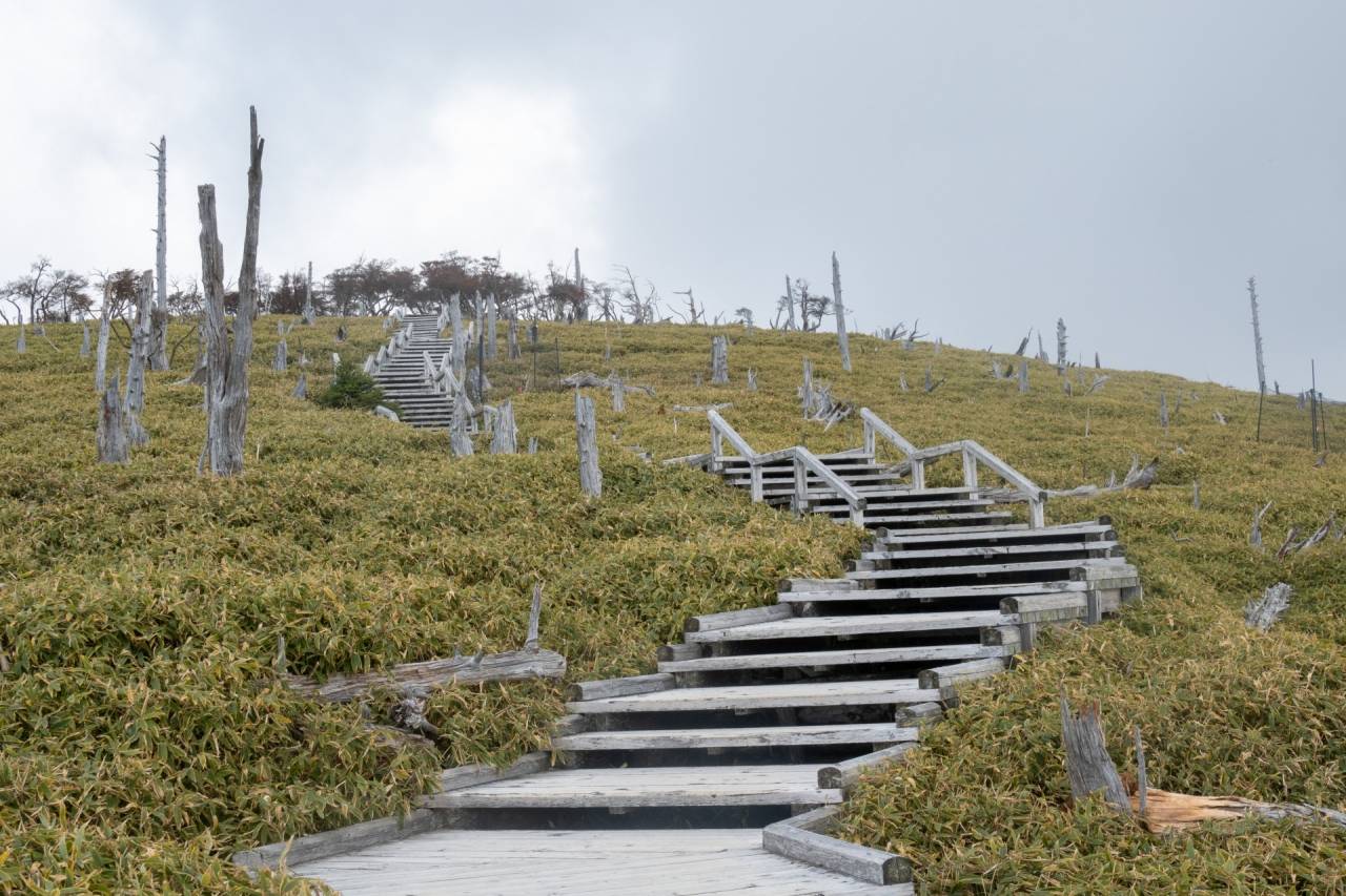 原生林には苔むした倒木が多く、霧の中に見る光景は神秘的です。